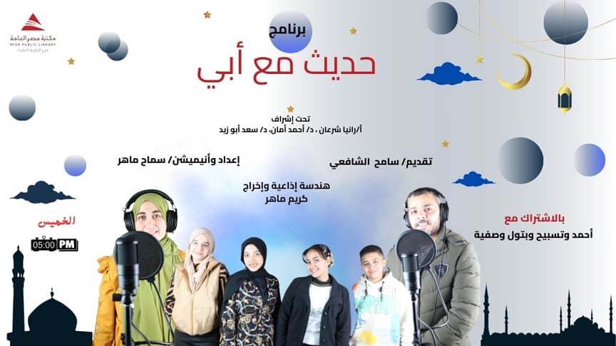 🕌 برنامج “حديث مع أبي” حديث نبوي… فكرة صغيرة لقلب كبير! برنامج حواري تربوي بسيط ومميز يعرض أحاديث نبوية شريفة، يناقشها مع الأطفال بشكل مبسط وعصري. من إعداد سماح ماهر وتقديم سامح شافعي، بمشاركة الأطفال بتول، أحمد، صفية، وتسبيح. هندسة إذاعية وإخراج كريم ماهر.