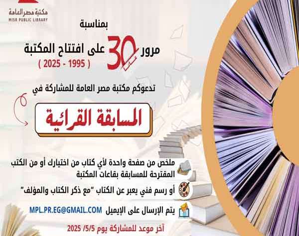 📚 تنويه هام | الجرد السنوي للكتب 2025 –تُعلن مكتبة مصر العامة…