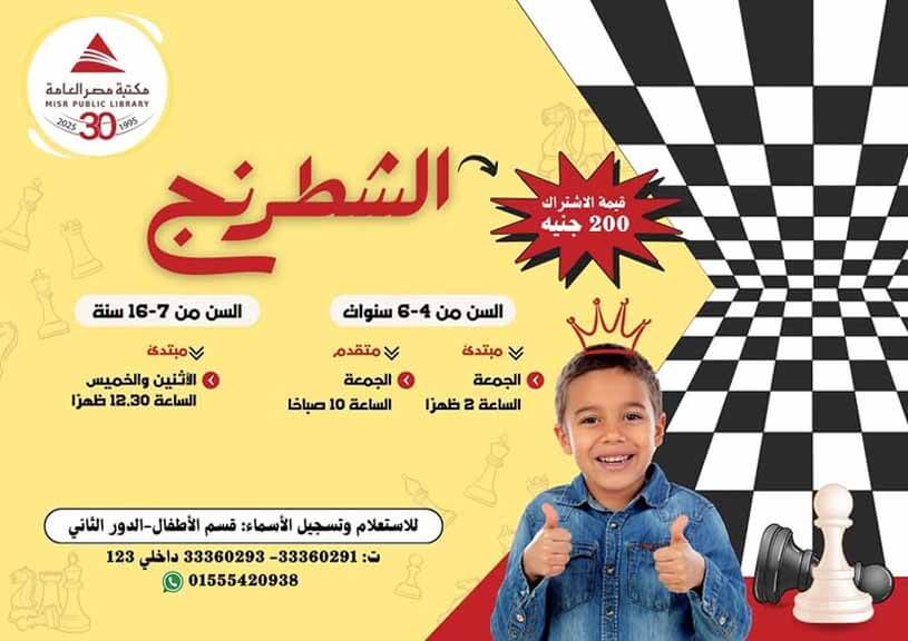 ♟️ نادي الشطرنج بمكتبة مصر العامةهل تريد تنمية ذكاء طفلك وتعليمه الصبر والتركيز؟📌 إذًا… مكانه معنا!🌟 ليه الشطرنج؟الشطرنج مش مجرد لعبة…