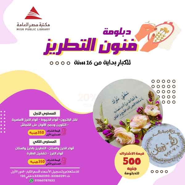 دبلومة فنون التطريز من الفنون اليدوية المميزة التى تستخدم فى تزين الأقمشة والمنسوجات بإستخدام الخيوط وصنع الديكورات الجميله والمميزة لأنها بضيف للقطعة المزينة طابع مميز وأثرى . الدبلومة عبارة عن مستوين